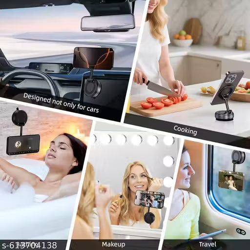Using advanced vacuum suction technology + powerful magnets, this bracket firmly attaches to smooth surfaces and holds your essentials securely.